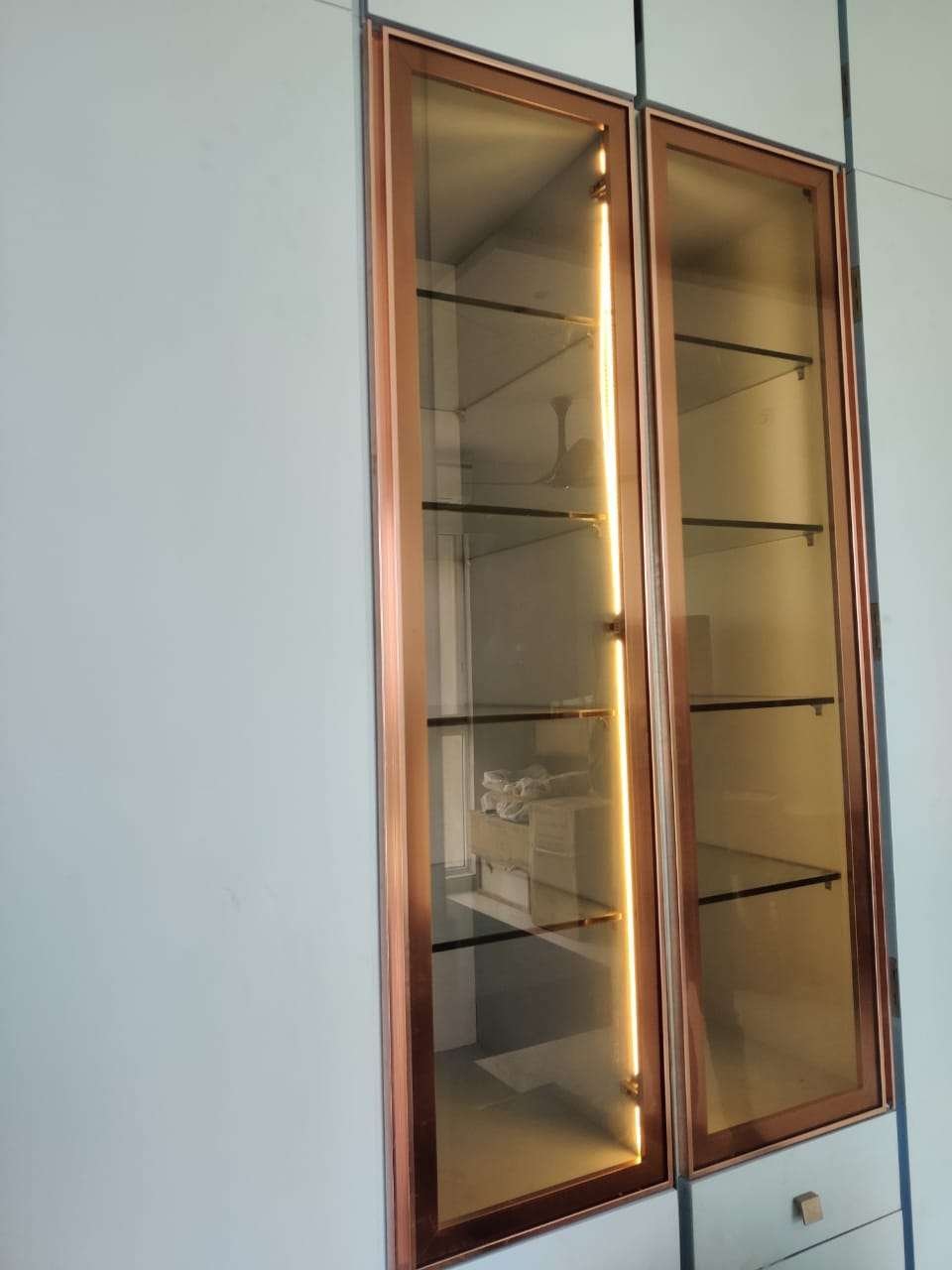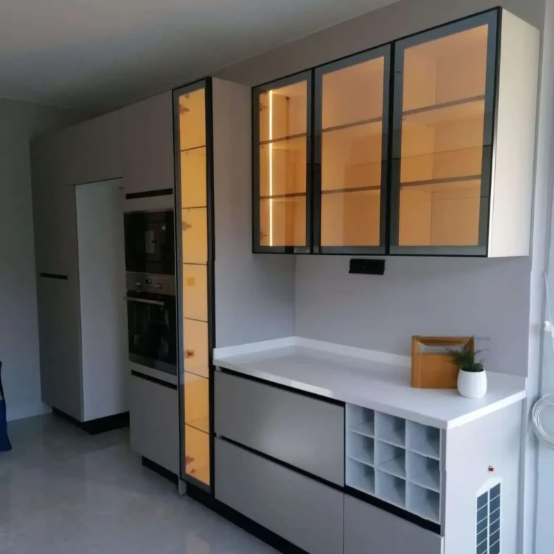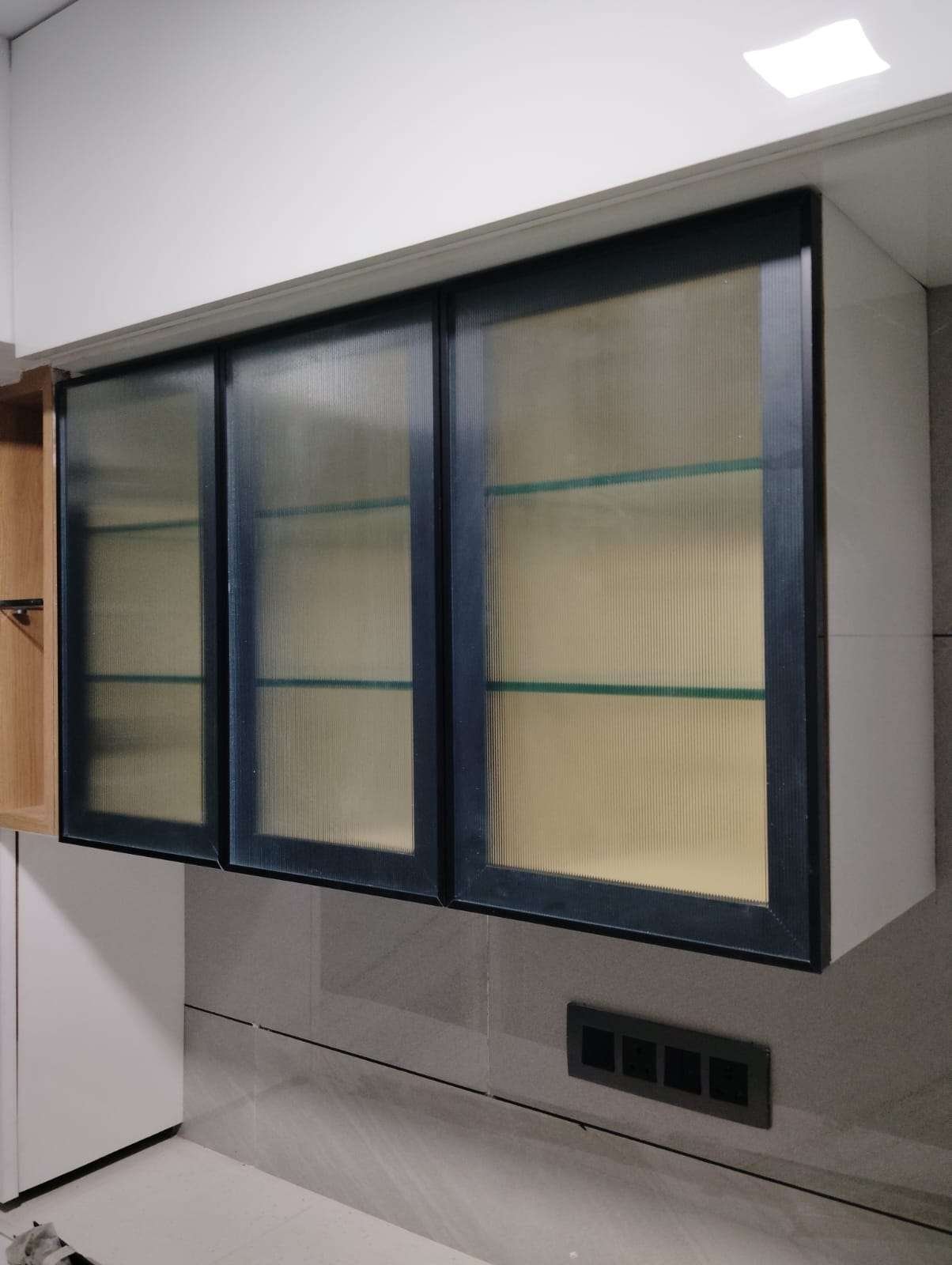 Aluminum profile shutter doors with sleek lines and smooth operation, designed for modular kitchens, wardrobes, and storage units. Durable, lightweight, and available in a range of finishes for a refined